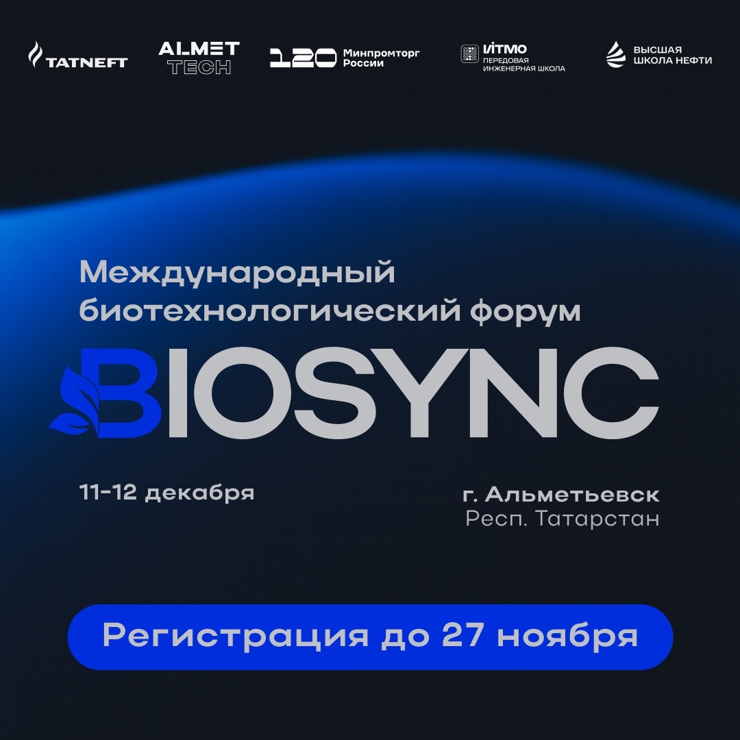 Международный биотехнологический форум BIOSYNC пройдет с 11 по 12 декабря 2025 года в г. Альметьевск (Республика Татарстан).