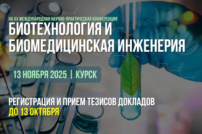 Успейте подать заявку на XV Международную научно-практическую конференцию «Биотехнология и биомедицинская инженерия» пройдет 13 ноября 2025 года в Курске.