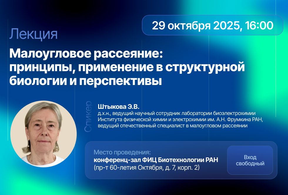 Лекция состоится 29 октября 2025 в 16:00 в конференц-зале ФИЦ Биотехнологии РАН (пр-т 60-летия Октября, д. 7, корп. 2).
