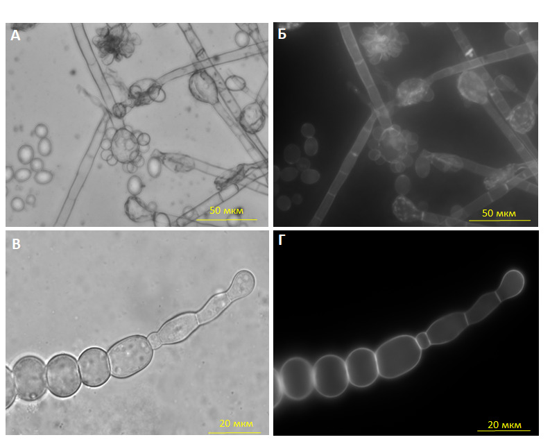 «Они предоставили серии соединений, разрабатываемых для защиты произведений живописи от биопоражения. Их мы испытали против Iodophanus sp. STG-150. В ФИЦ Биотехнологии РАН синтезировали варианты гетероциклических серосодержащих соединений. Из ИМБ РАН передали алкилнкулеозиды и H-фосфиновые аналоги аминокислот. Кроме разрабатываемых соединений также изучили воздействие стандартных антисептиков, применяемых для защиты живописи, таких как Катамин АБ и пентахлорфенолят натрия. Испытания показали эффективность новых биоцидов, добавленных к микробиологическим средам – особенно серосодержащих гетероциклических соединений и H-фосфинового аналога аспартата», – рассказывает руководитель группы генетической инженерии грибов, с.н.с. Александр Жгун.