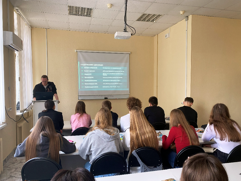 Сотрудник группы прикладного искусственного интеллекта в моделировании биологических систем Максим Скудин разобрал вместе со школьниками вопросы взаимодействия биотехнологии и искусственного интеллекта. На конкретных примерах обсудили, как нейросети помогают ученым расшифровывать белки, ускоряют создание лекарств и моделируют будущее экосистем.