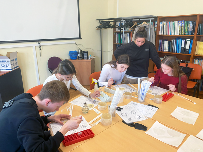 Дополнительно для участников интенсив-недели были проведены увлекательные мастер-классы. Под чутким руководством ученых Центра школьники научились рисовать микроорганизмами на чашках Петри, провели ИФА-анализ сортового картофеля, попробовали выделить ДНК из бананов и прочеренковали in vitro образцы растений.
